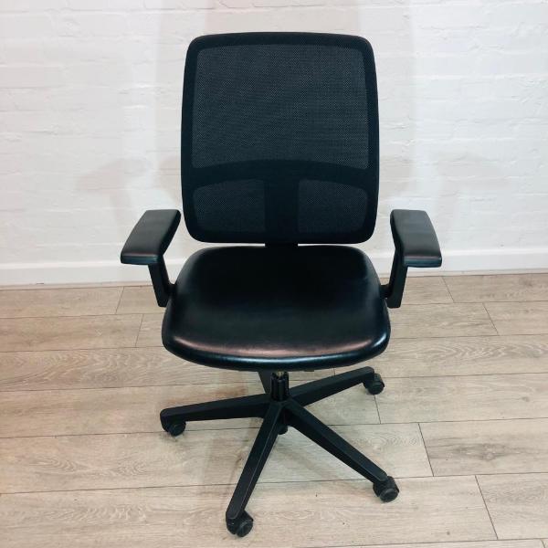 Executive Office Chair Black real leather High back Standard height adjustment Armrests Swivel base on castor wheels Ideal for home , office, meeting & conference rooms